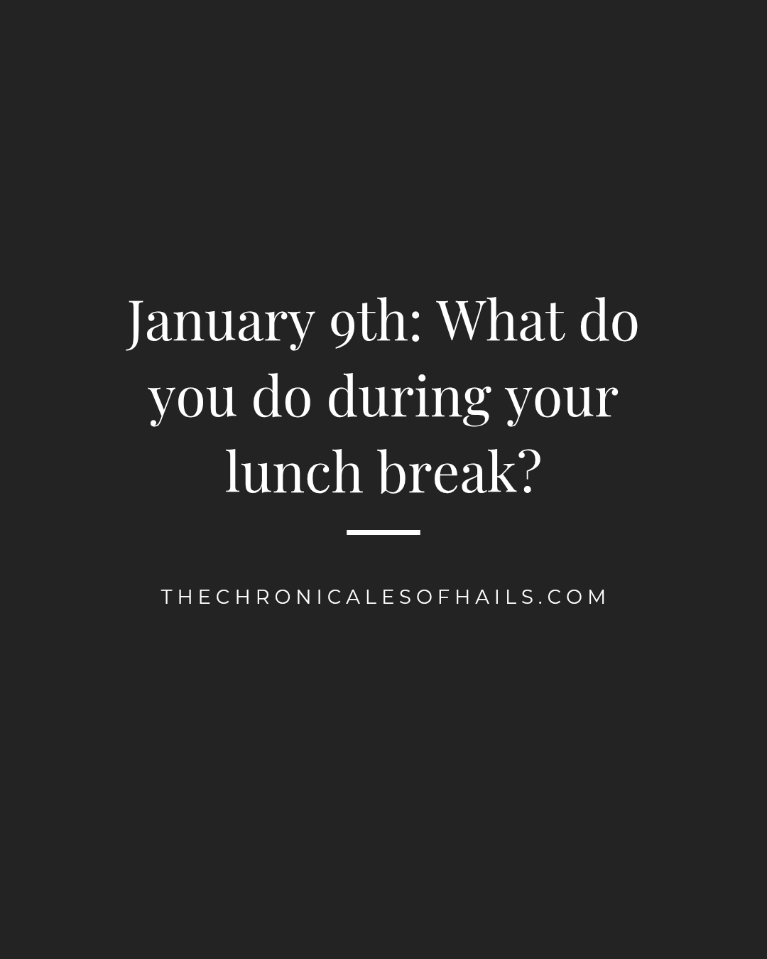Well I’m glad you asked. I technically don’t have a proper lunch break or schedule to be honest. But I do try to have a proper meal break when I’m writing. And that usually looks like stopping and making my food then watching a show (typically Bobโs Burgers or a quick YouTube video) while I eat and then I’ll get back to it. That’s it. That’s the lunch routine. So comment yours below!