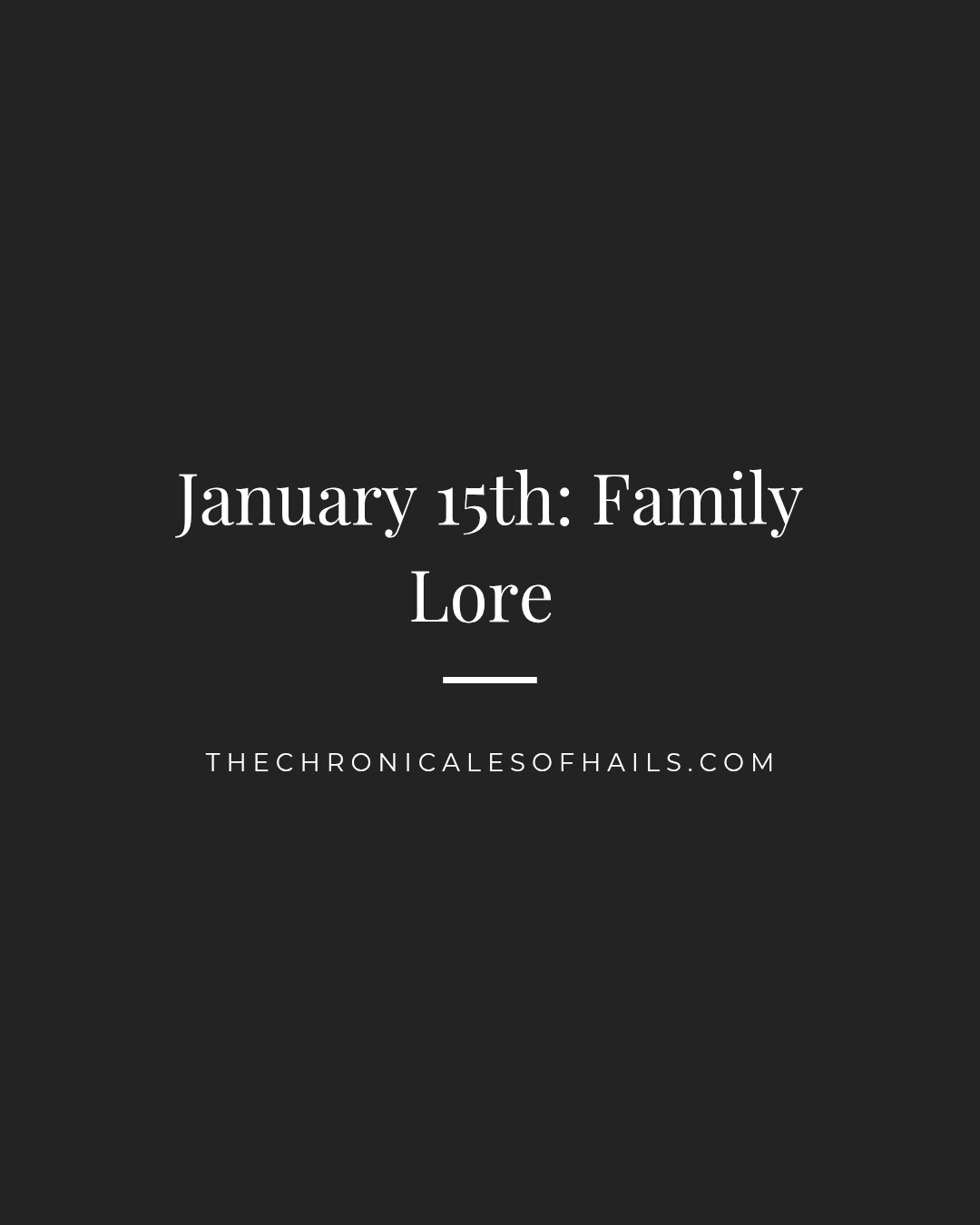 Ah, I’m actually not sure who the eldest member of the family is? I know that sounds bad but a while back I would have said my great grandmother but sadly she passed away about a year ago and I’m not really sure the ages of everyone else in the family. I know I should really dive into my genealogy. Trust me it’s been nagging at my soul. So instead I’m going to switch this one up and do my own play – describing the eldest story of a family member. Aka family lore or kinda like a story in the family or something along those lines? Like a story we were told growing up and that I plan to tell my kids when I have them?
