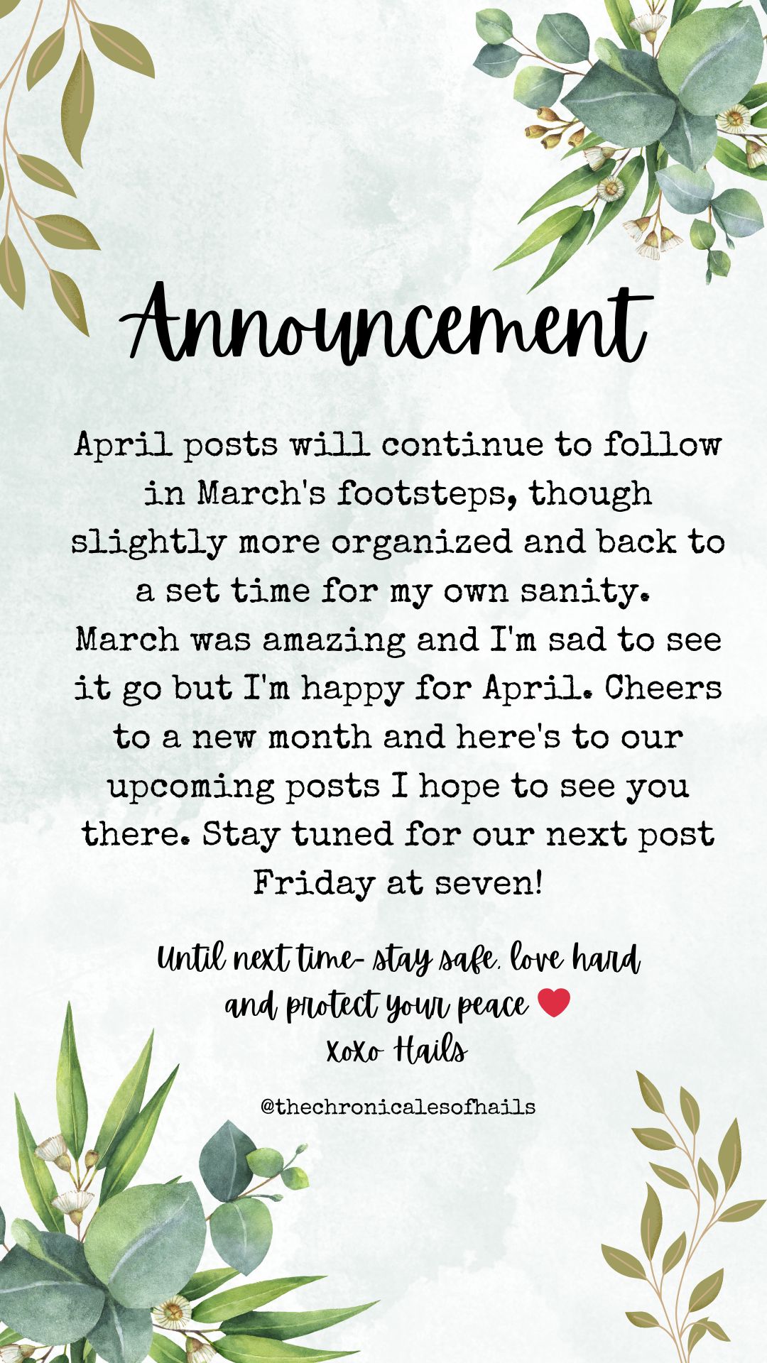 I just want to thank you all so much for another amazing month! Also I wanted to add that you will also see some more posts like this one coming in April just to help me keep up with the organizing of things as well as finding my groove I suppose? Like I’ve always said, I have no idea what I’m doing. I’m just winging it and I’m so thankful for everyone who is along for the ride!